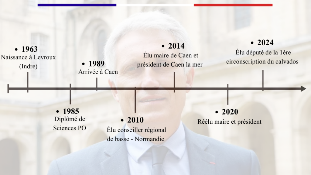 Souhaitant poursuivre mon investissement pour mon territoire, je me suis présenté à l’élection municipale de Caen en 2014 à la suite de laquelle j’ai été élu maire de Caen. C’est avec une grande fierté que j’ai été réélu en 2020 maire puis président de la Communauté urbaine Caen la mer pour un second mandat. Durant 10 ans, j’ai eu la chance d’exercer le plus beau des mandats. En effet, la proximité et les liens tissés avec les habitants ont constitué pour moi le cœur d’un engagement qui fait du service aux autres une priorité.
